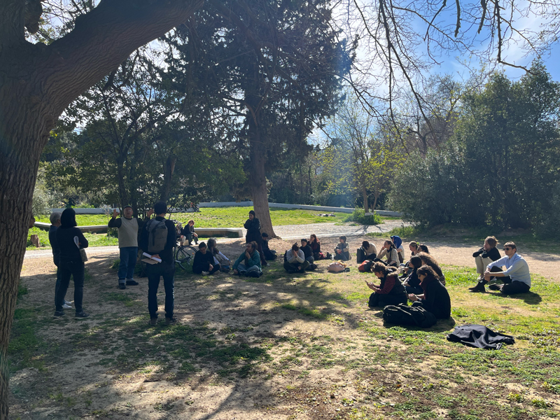 • Στο Πεδίον του Άρεως, η ομάδα ανέπτυξε την ιστορία του πάρκου, σχεδιαστικές προτάσεις για αυτό και τις μετατοπίσεις στη διαχείρισής του. Προσκεκλημένοι ομιλητές ήταν ο Θοδωρής Κοκκινάκης και ο Μπάμπης Μπαλτάς, μέλη της πρωτοβουλίας πολιτών «Εμείς στο Πεδίον του Άρεως», που παρουσίασαν κρίσιμα προβλήματα στην οργάνωση και διαχείριση του πάρκου, αιτήματα των κατοίκων και κινηματικές δράσεις.